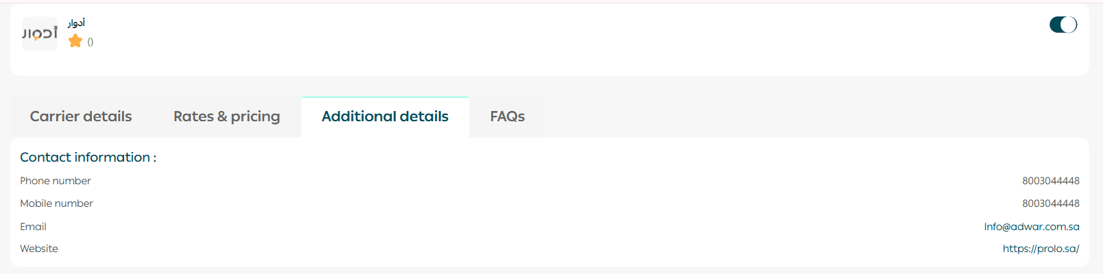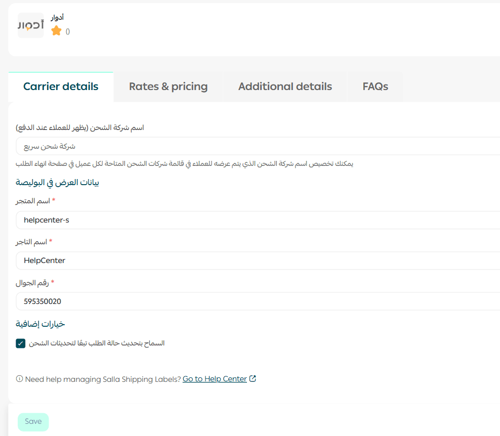 Adwar is a shipping company available within Salla Shipping Labels, offering: