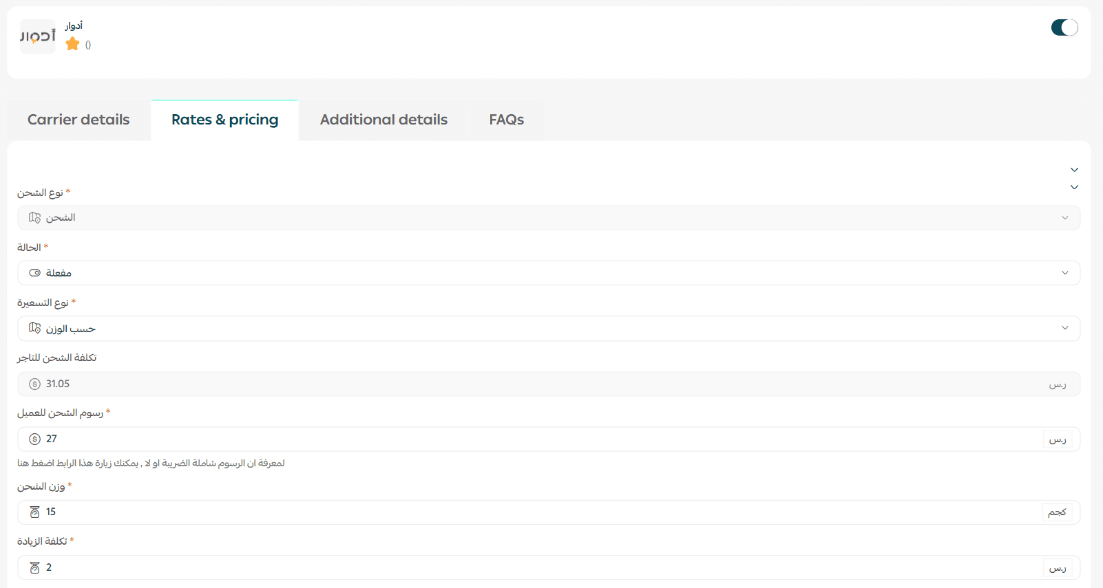 Note: Adwar refrigerated shipping integration is currently available only for stores in Saudi Arabia.