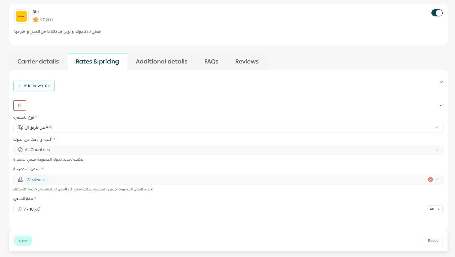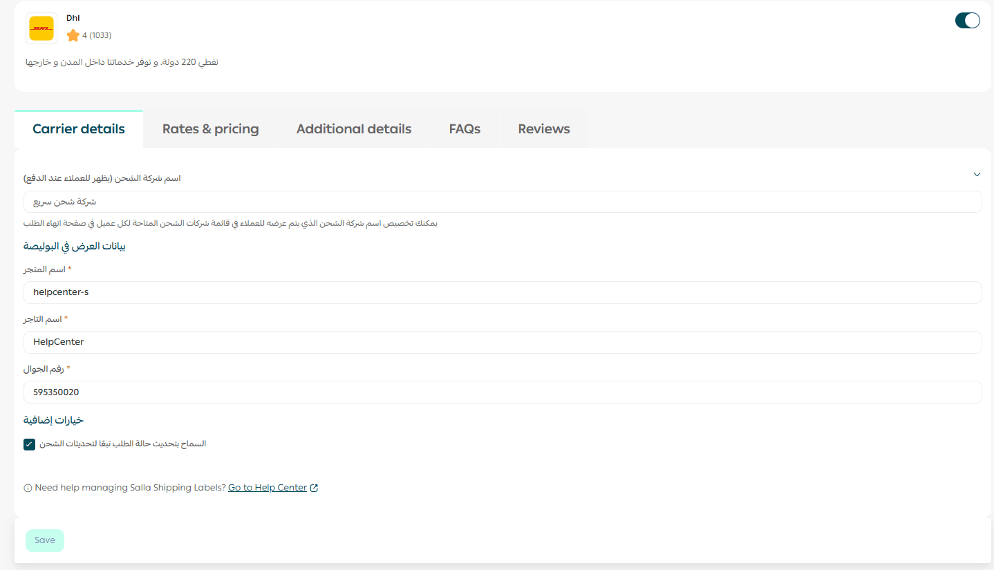 Note: DHL International Shipping integration is currently available only for stores in Saudi Arabia.