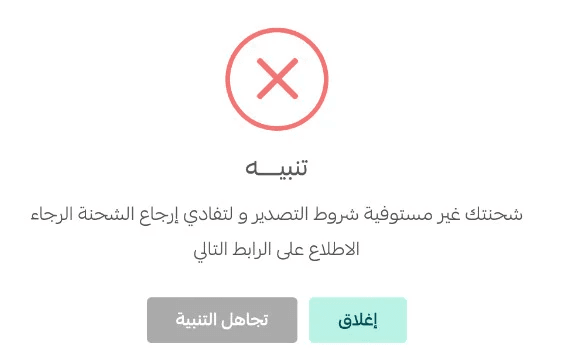 A notification will appear if the shipment is international and does not meet the required conditions.