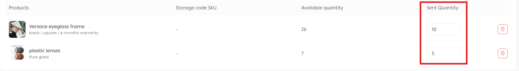 4. Specify the quantity you want to send to the branch or warehouse.