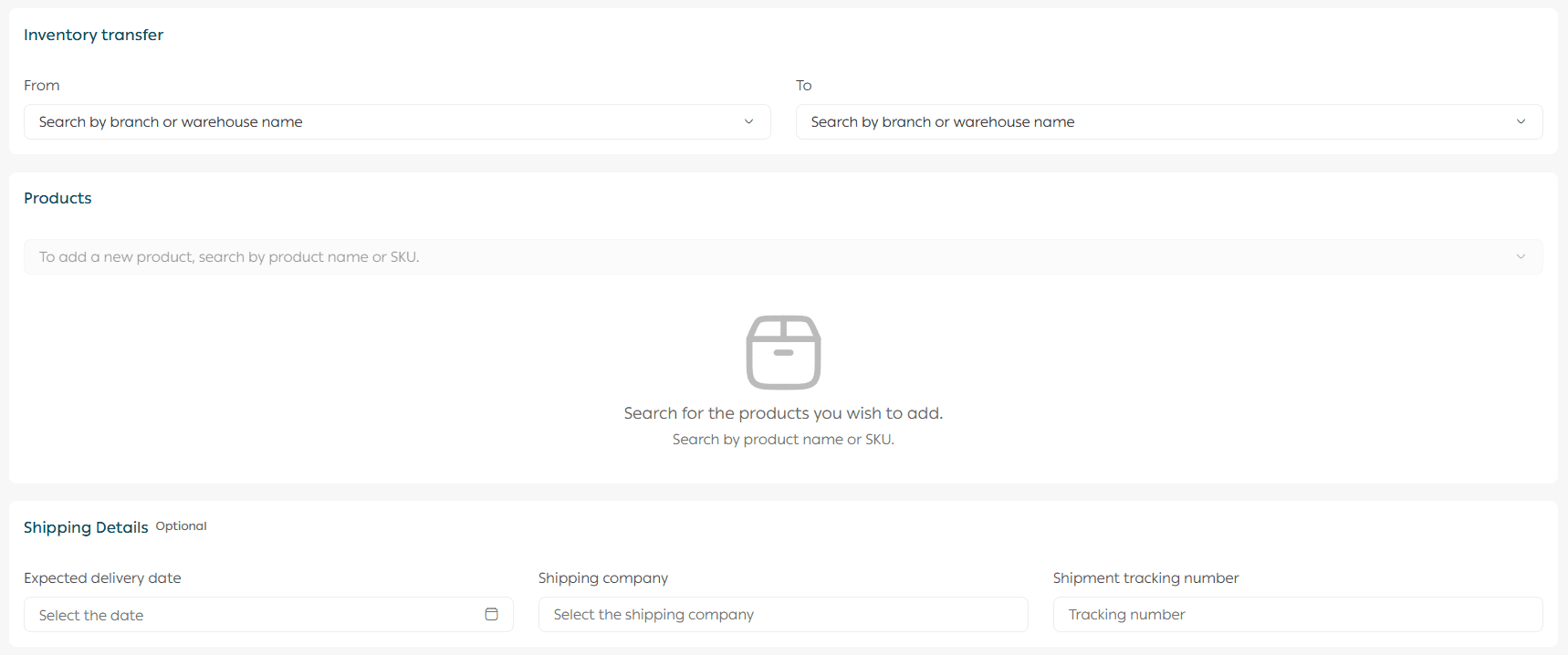 Adding products to the transfer