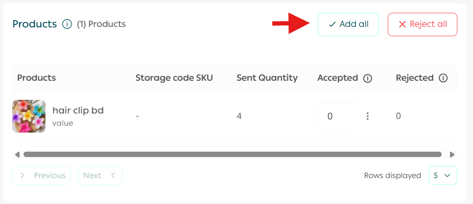 To accept a specific quantity of each product, use Accept allowed quantity. The system will automatically calculate the rejected quantity.