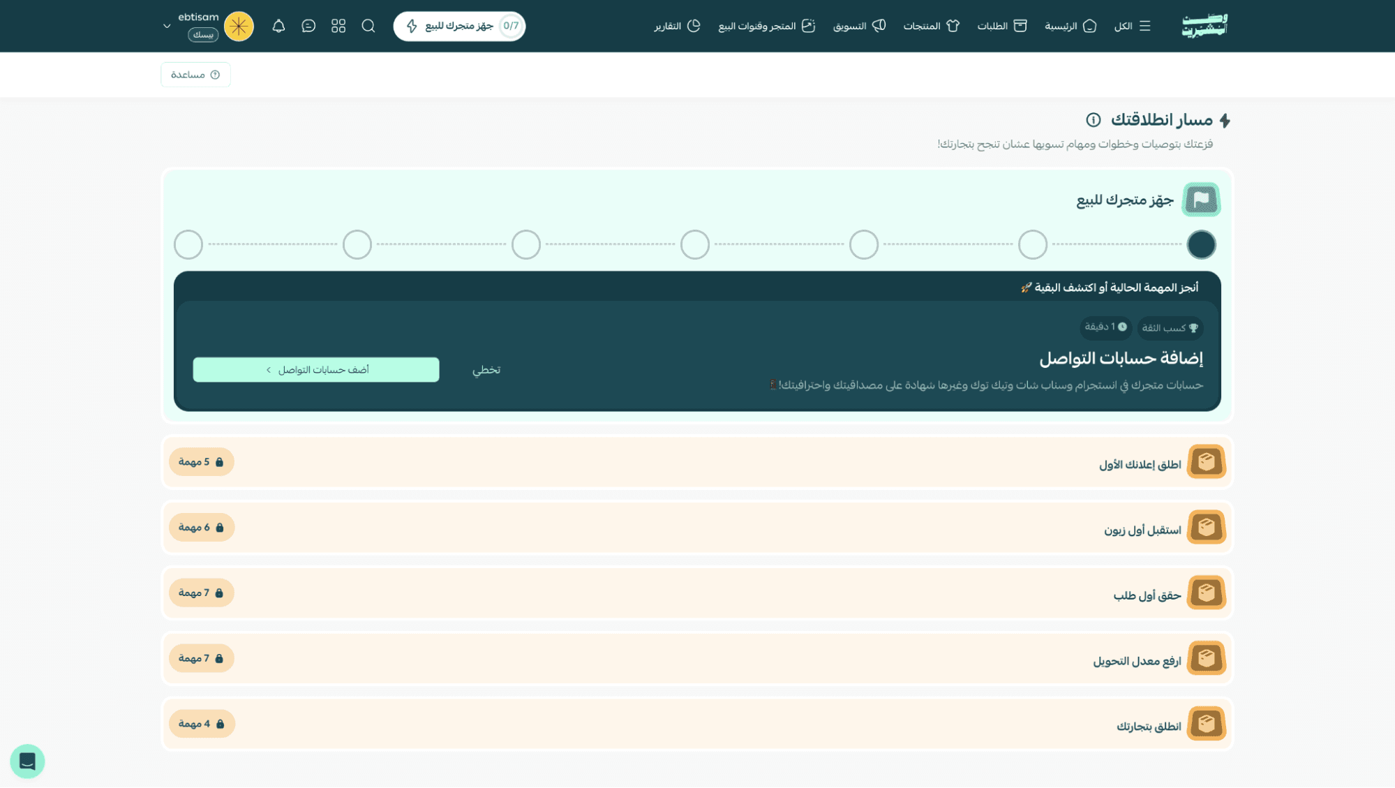 The path is built around proven e-commerce practices, such as improving the customer experience, enabling sales channels, and monitoring performance. These tasks are supported by smart guidance that makes your start clearer and increases your chances of reaching your first five paid sales faster.