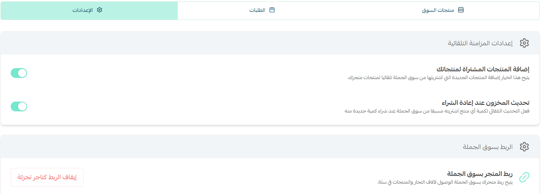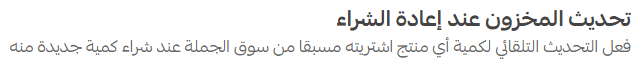 Enable this option to automatically update stock quantities when you purchase additional units of a product you previously bought from Souq Eljomla.