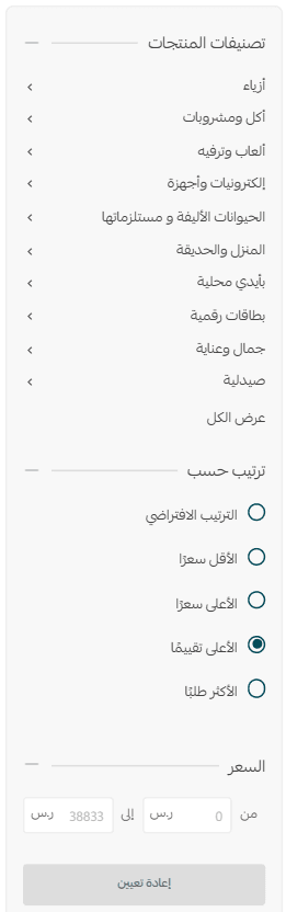 You can filter and sort products using the sidebar filters, including:
