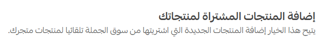 This option automatically adds products you purchase from Souq Eljomla to your store’s product list.