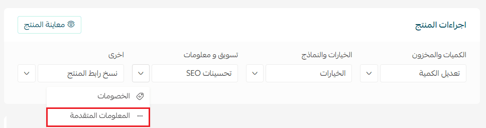 - Under Product Actions, click More, then select Advanced Information.