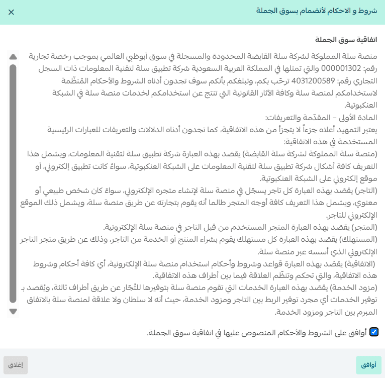 3. Read the Souq Eljomla agreement, accept the terms and conditions, then click Agree.