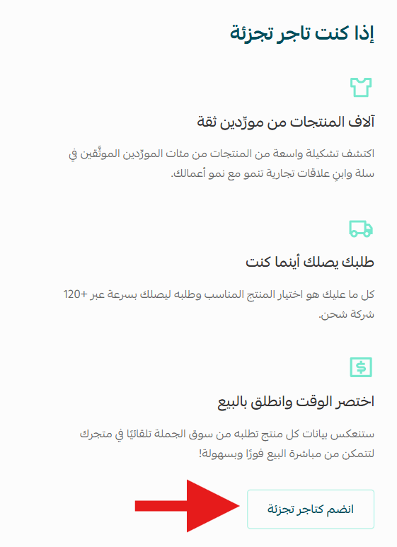 You will be redirected to the Souq Eljomla homepage as a retailer.