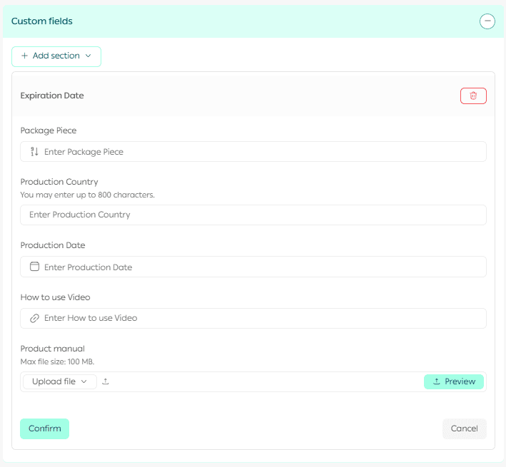 Efficient product management goes beyond basic details. Customers want clear, structured information that helps them understand the product quickly and confidently. Custom product fields allow you to add extra details such as dimensions, packaging type, or user guide links, making your product pages more informative and easier to trust.