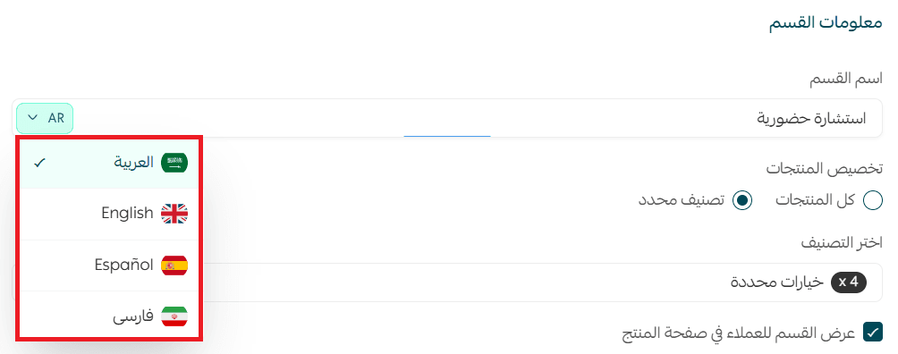 📝 Note: You can add the section title in another language by switching the language from the custom fields settings.