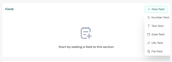 After creating a section, add the fields you need. You can add up to 10 fields per section.