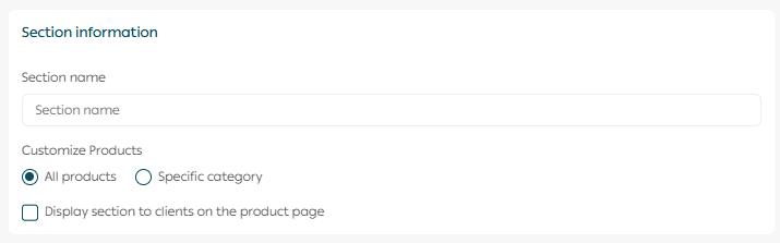 Choose whether this section should appear on the product page for customers.