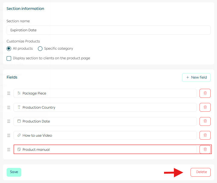 6. Delete a custom field