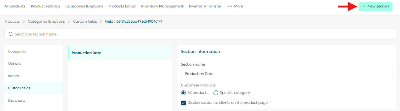 - From the Custom Fields page, click Add New Section.