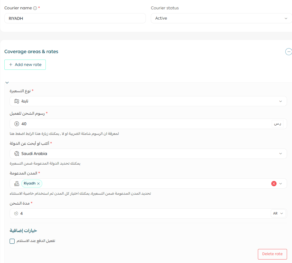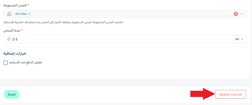 Scroll to the bottom of the courier’s page and click Delete courier.