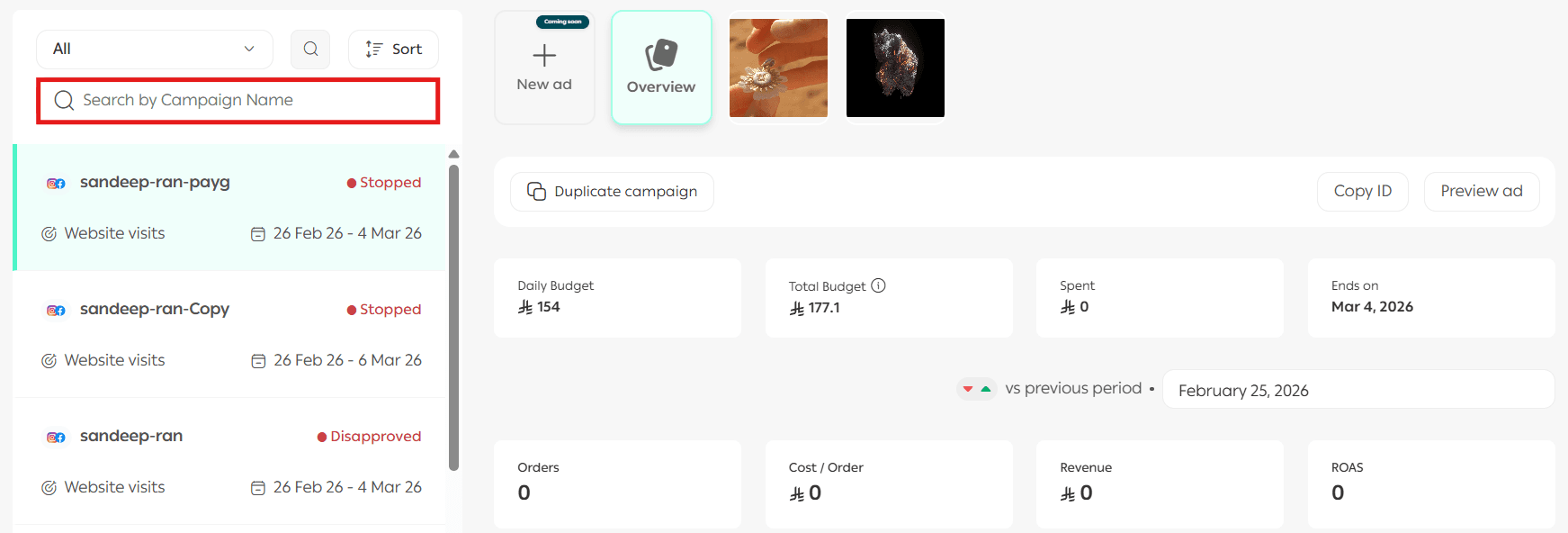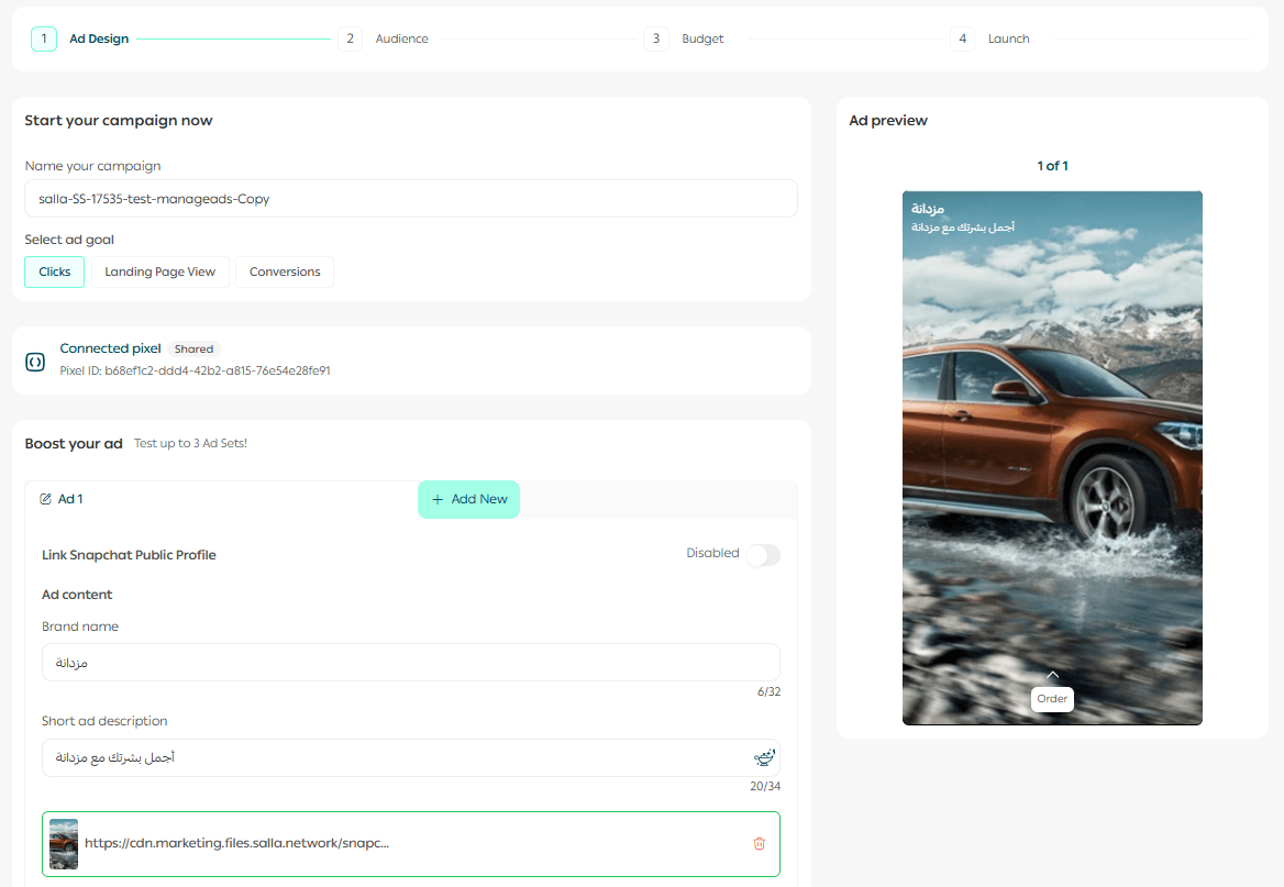 Complete the ad creation steps based on the selected platform. Once published, the campaign will appear in the Ads Management page.