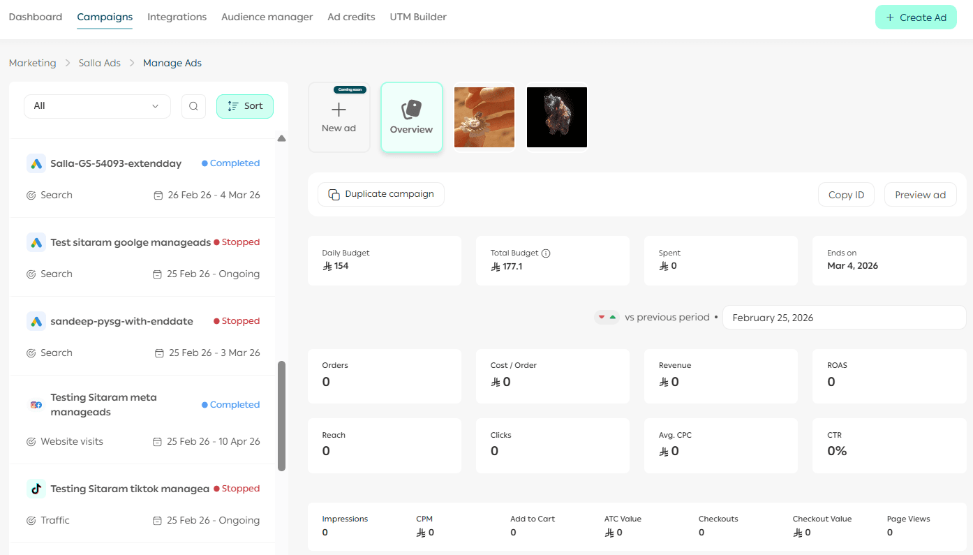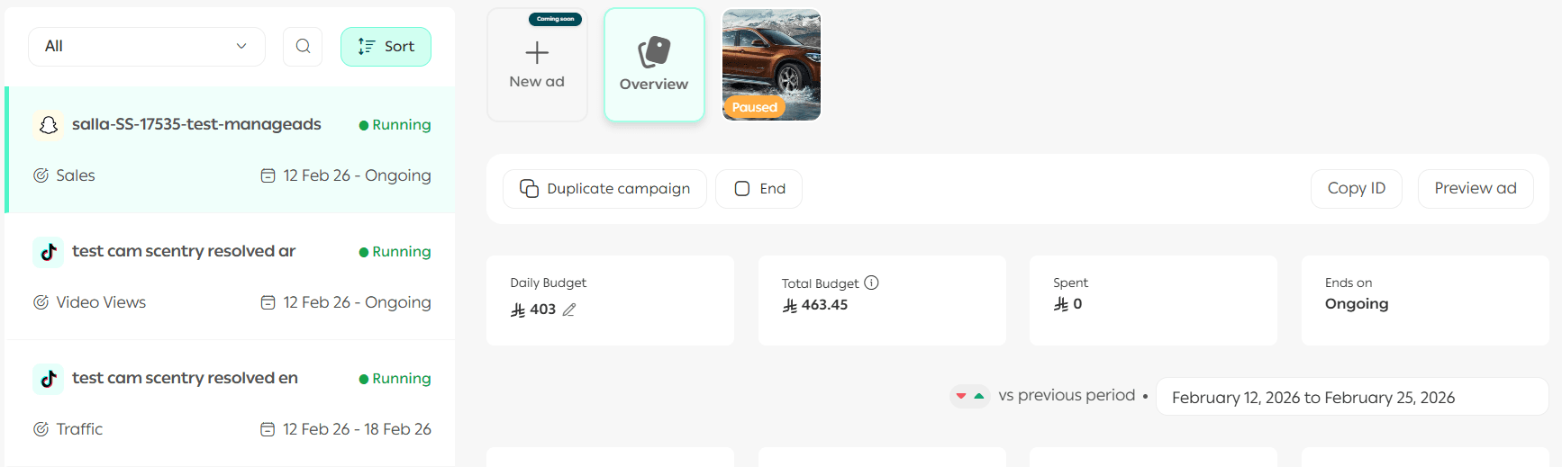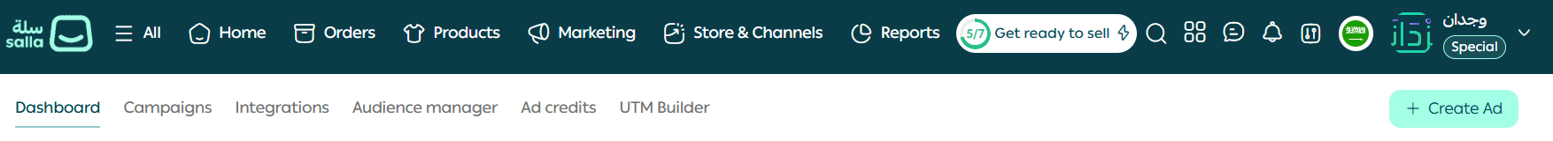 We take you step by step through the Salla Ads Management page to show you how to manage advertising campaigns professionally, perform essential actions with ease, and analyze performance data in a way that helps you improve results and maximize return on your advertising budget.