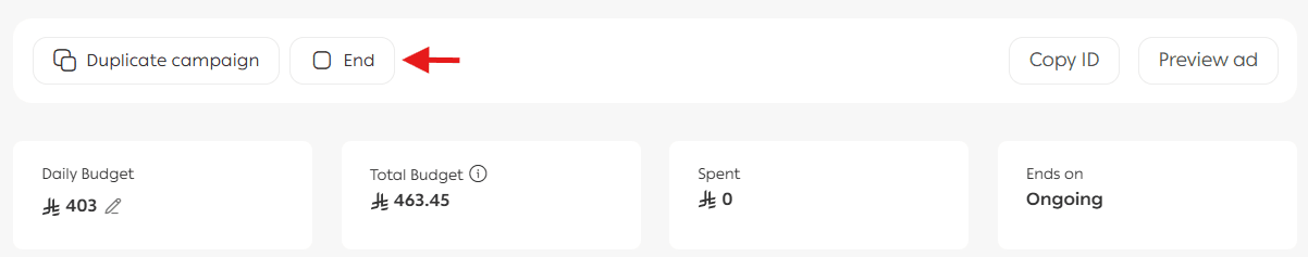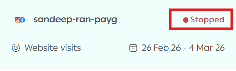 - Stopped: the campaign was manually stopped, and ads are no longer displayed