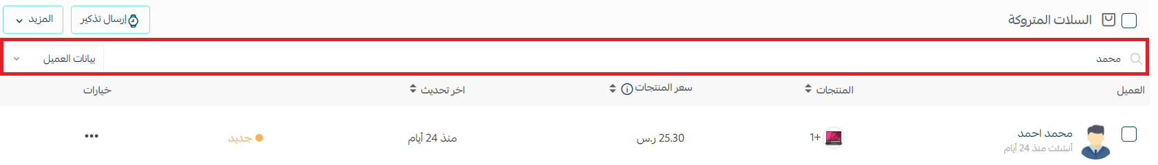 💡 Example: Searching for carts belonging to customers whose name contains “Mohammed”.