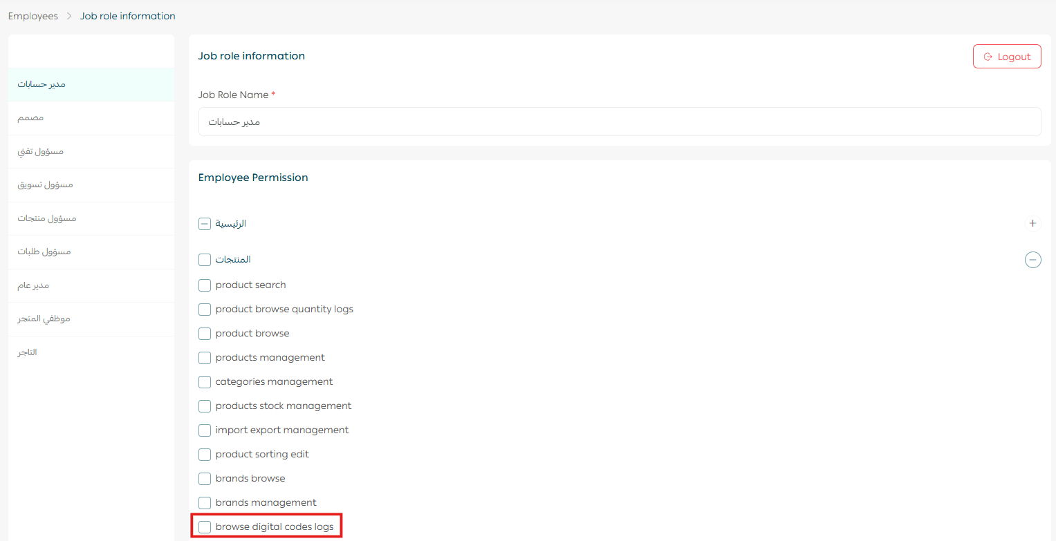 In the Product Permissions section, enable View Digital Codes Log.