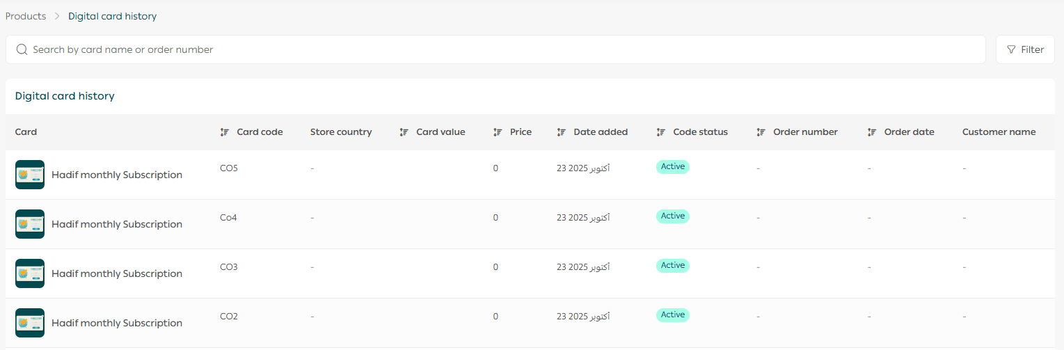 Manually searching for sold codes can slow down your support team and increase operational errors. The Digital Cards Log solves this problem by giving you a centralized view of all digital card codes, their status, and related orders. With this tool, you can manage inventory accurately, locate codes instantly, and provide faster, more reliable customer service.