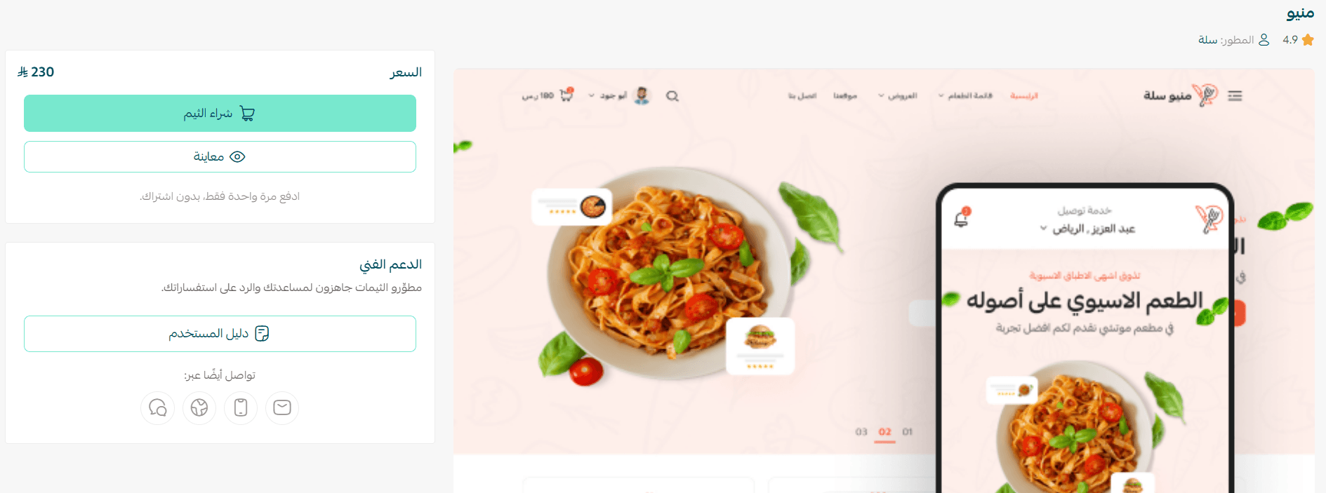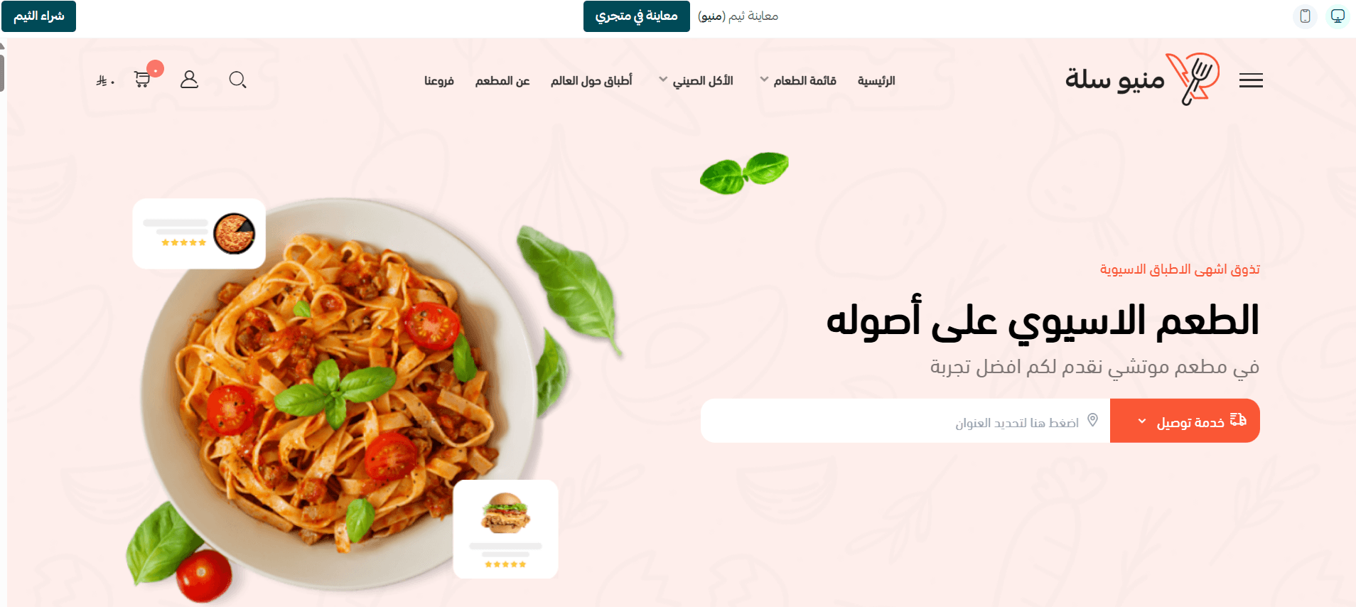 The Menu Theme features a simple and professional design tailored for restaurants and food businesses. It presents products in a smooth, menu-like format and includes essential information such as working hours, location, and contact details, making it easier for customers to explore and place orders quickly.