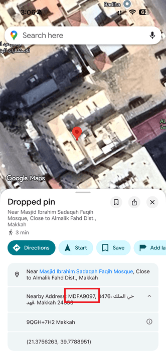 Select the location you want on the map, then copy the short address code from the “Nearby Address” section.