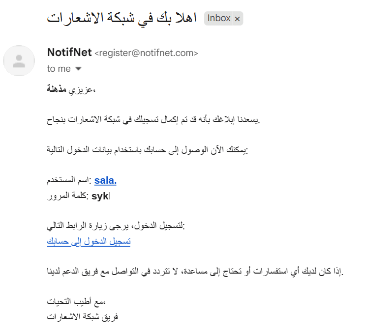 - You will receive an email containing your login credentials for the Notifications Network platform.