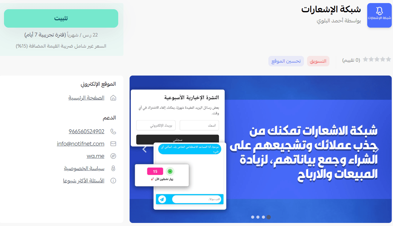 This article explains how to connect and manage the Notifications Network app in your Salla store.