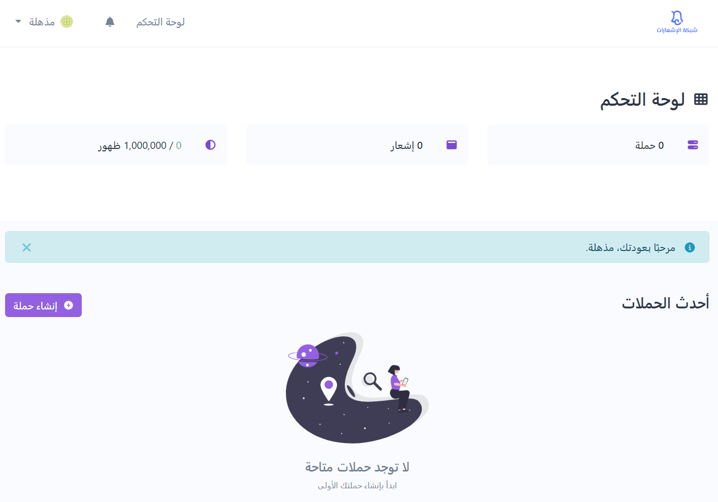 - You’ll be redirected to the main dashboard of the Notifications Network.