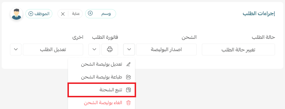 From the Order Actions section, click Add Order Employee, then select an employee from the list.