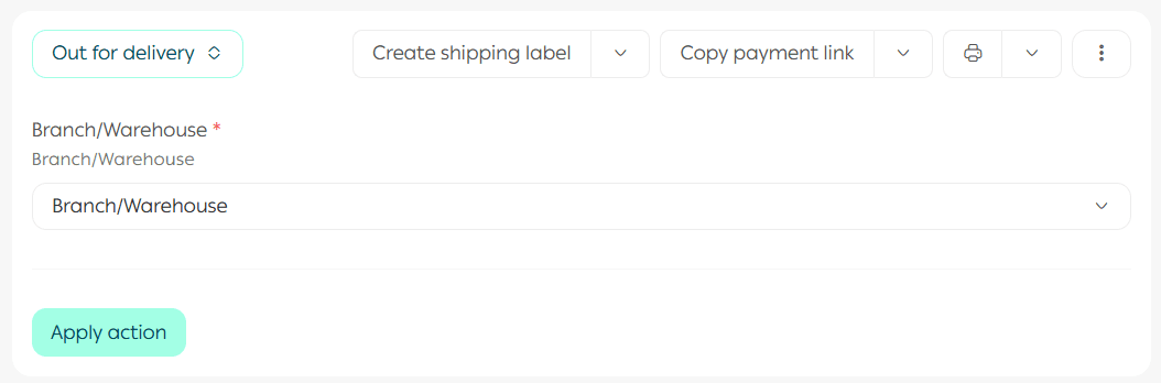 Select the branch where the shipment will be picked up, enter the required shipping information, then click Execute Action.