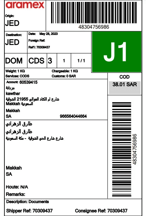 Once the branch and shipping details are confirmed, the order is sent to the shipping company to generate the label.