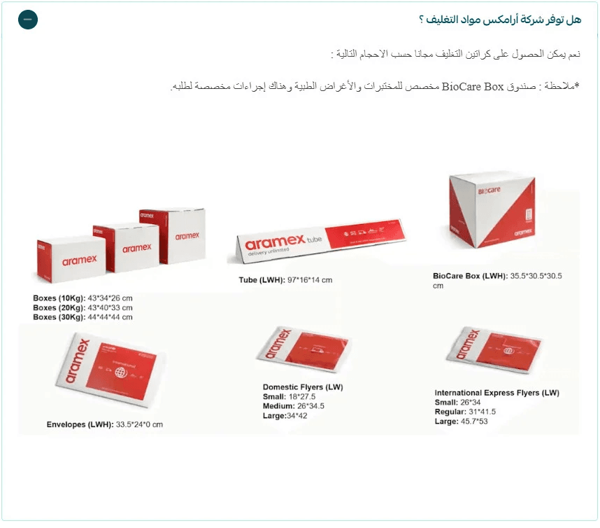 Aramex provides free packaging materials such as:
