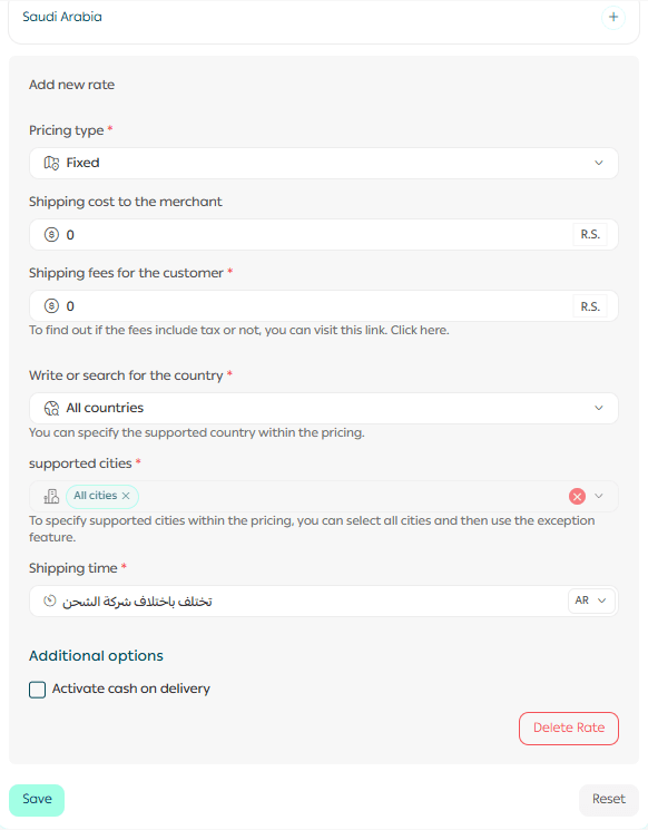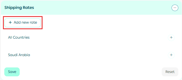 - Go to the Shipping Rates section and click Add New Rate.
