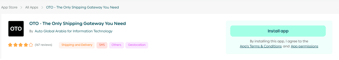 3. From the OTO Logistics app page, click Install.