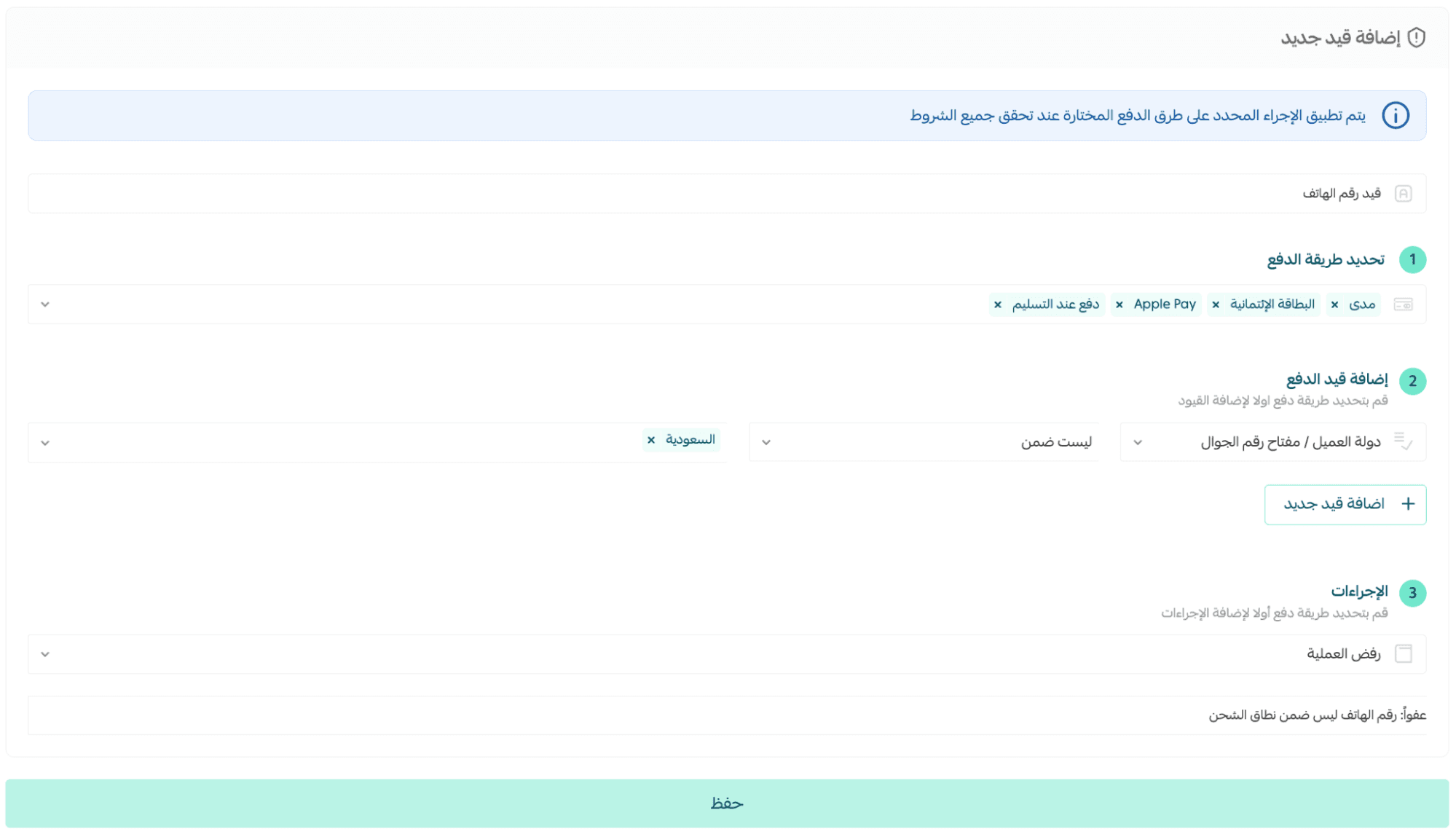 If a phone number does not start with +966, the checkout can be rejected to stay within the shipping region.