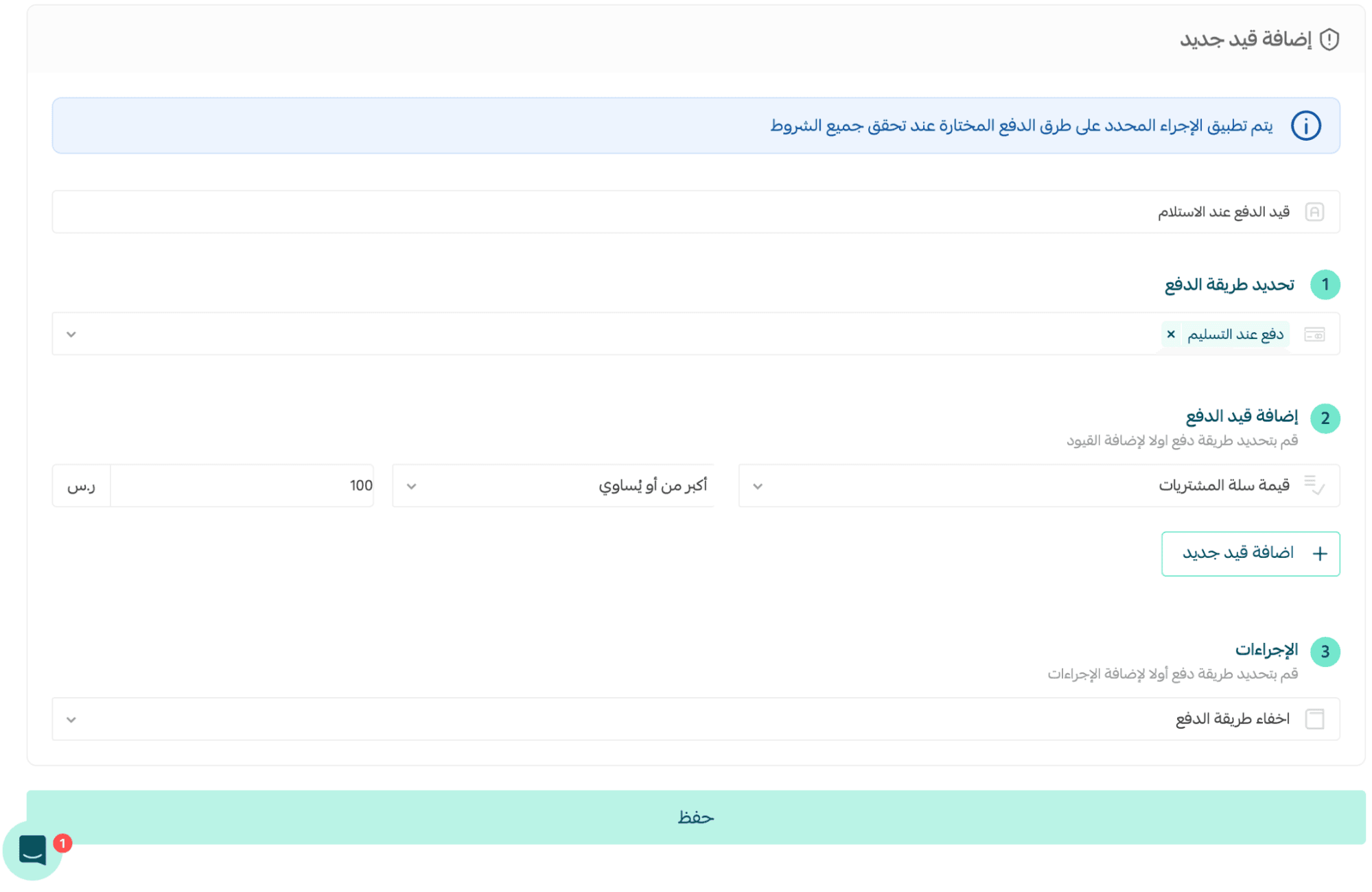 If the cart value is below SAR/AED 100, Cash on Delivery will be hidden automatically.