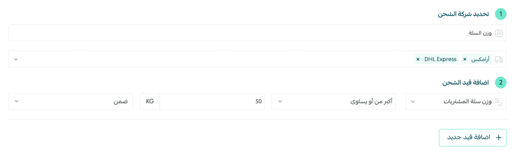 Result: When the shipment weight is more than 50 kg, only Aramex and DHL Express will appear as available shipping options.