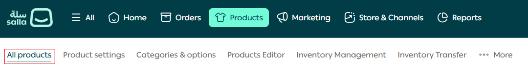 - From the Products page, go to the All Products tab.