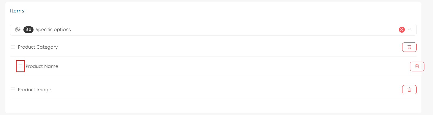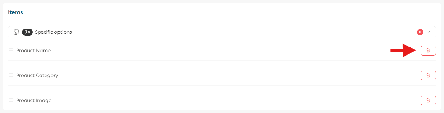 To remove a specific field from the Selected Fields section, click the delete icon next to it.
