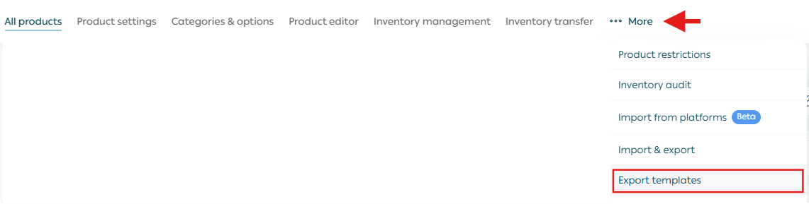 2. Within the Products section, click More then select Export Templates.