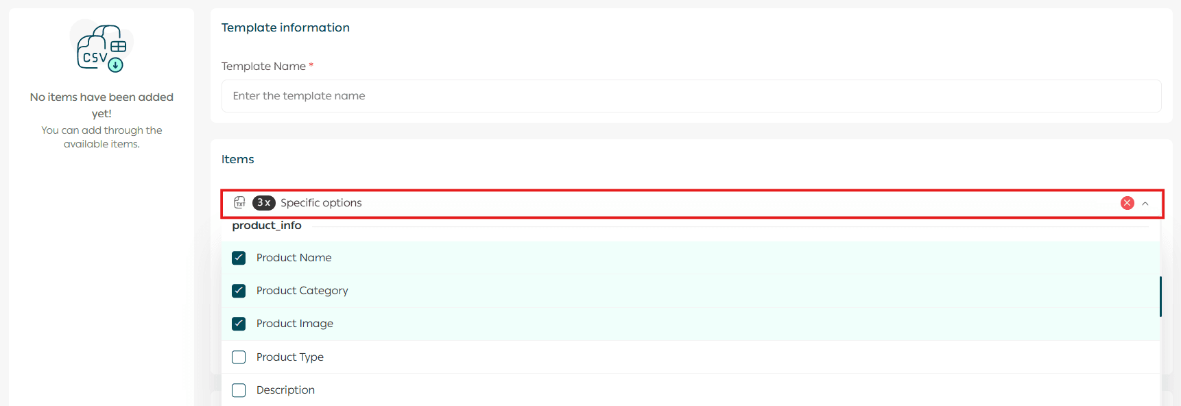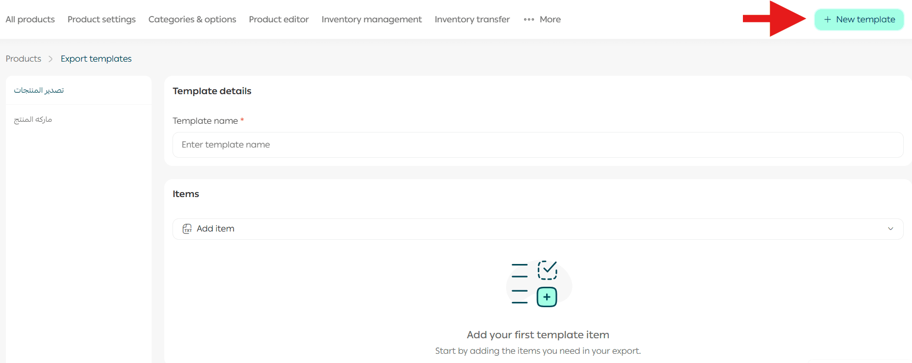 📝 Important note: You can create up to five export templates for products.