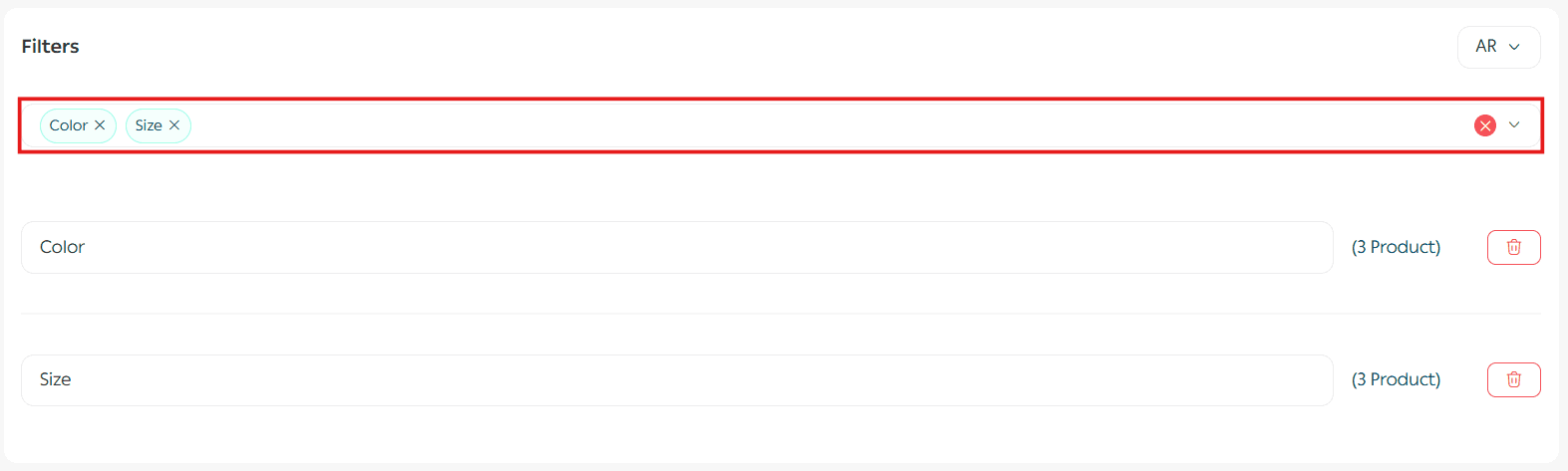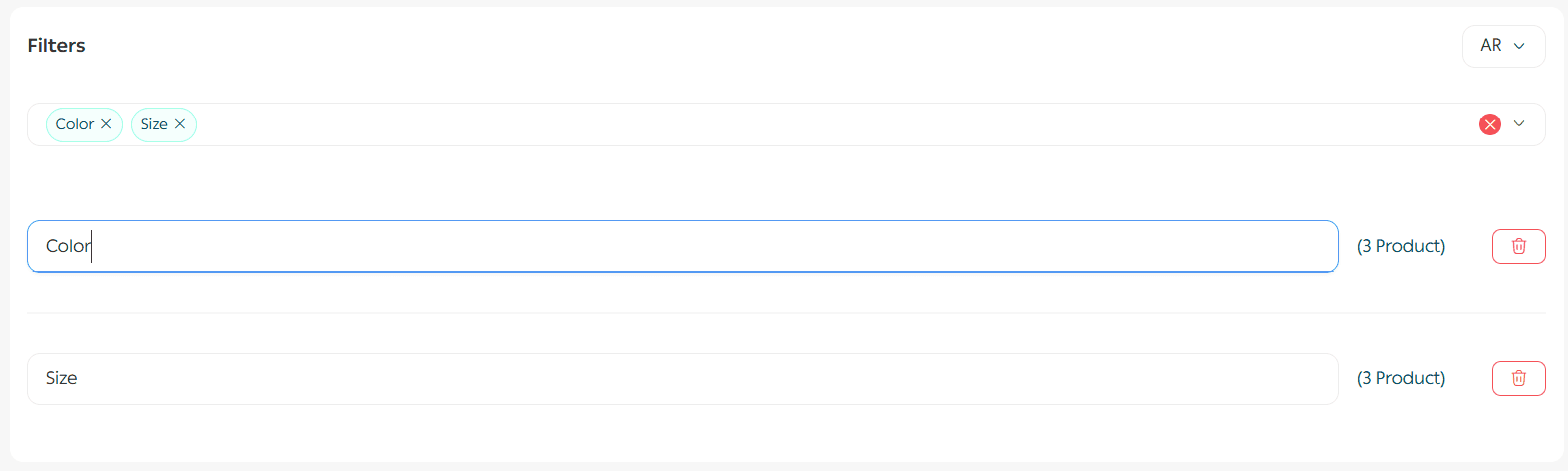 Based on the product options you have already added, you can enable or disable specific options to be used as filters.