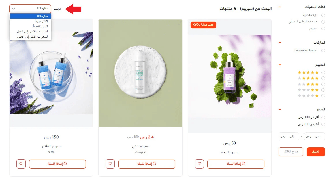 Filters provide more accurate and efficient search results. They are enhanced with spelling correction and intelligent matching, allowing the system to return the closest results based on product names and descriptions, even if the visitor makes a typing mistake.