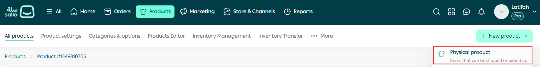 - Click Create new product, then select the product type you want to add.
