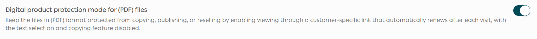 In this article, you will learn how to activate a feature that protects PDF digital products by allowing customers to view the file through a secure, private link that renews automatically on every visit. This protection disables text selection and copying, helping you safeguard your intellectual property while still delivering a smooth customer experience.