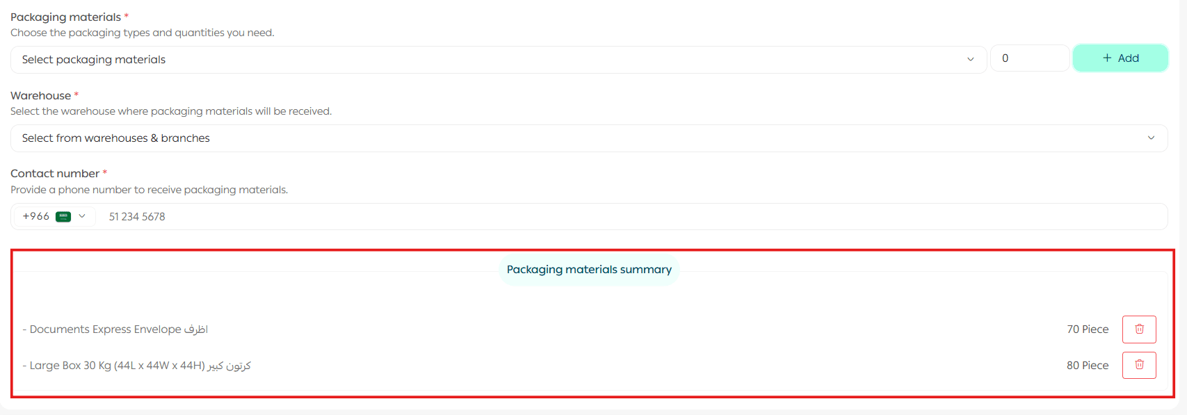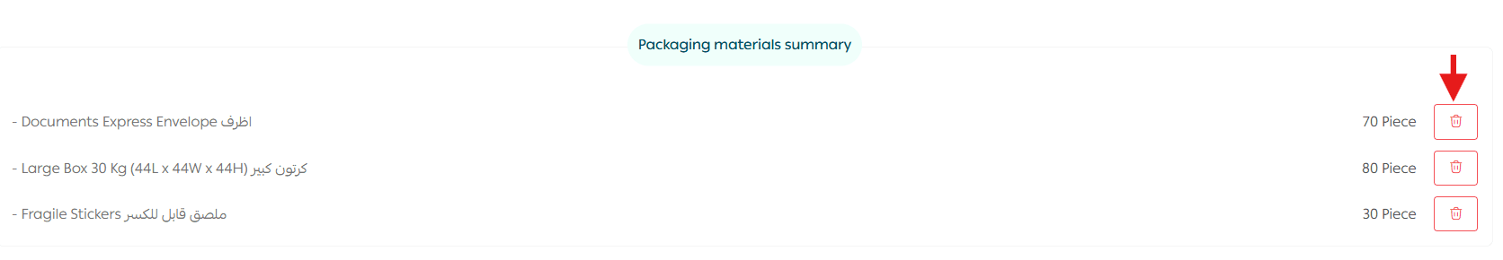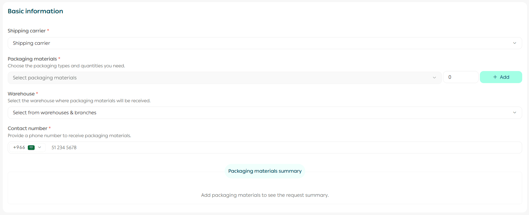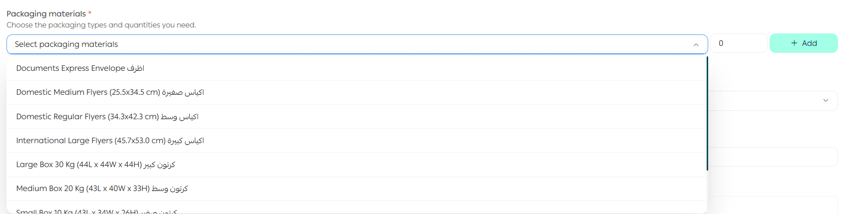 Important note: The maximum quantity you can request is 50% of your store’s Aramex shipments during the previous month. This means you must have previous shipments with Aramex in order to request packaging materials from them. A notification will appear if you exceed the allowed quantity.